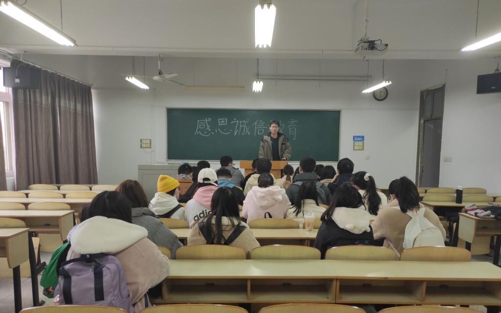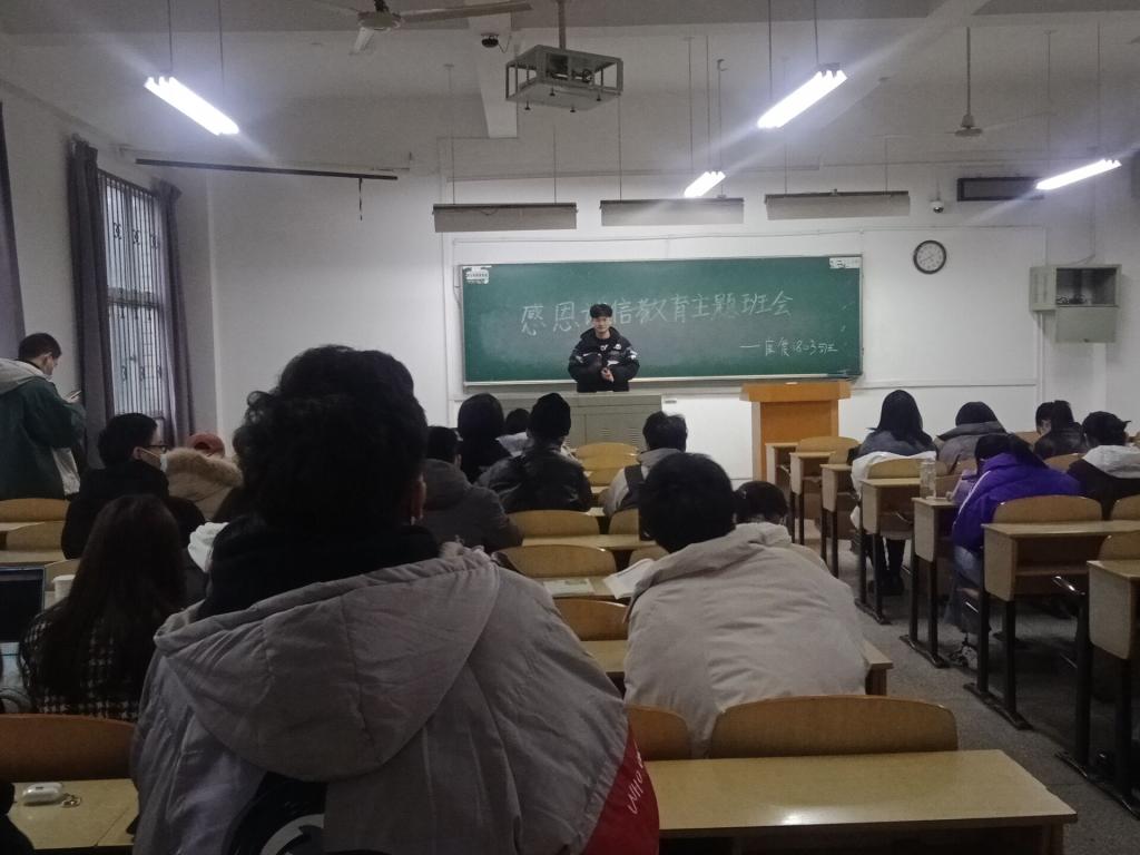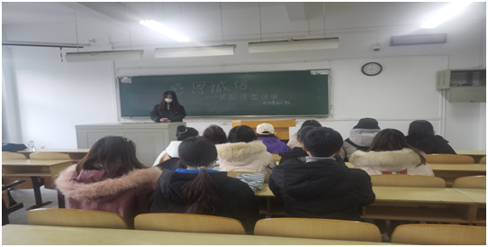 护理学1803班12月10日在3-102开展了感恩诚信教育主题班会,近期发放了助学金,班长再次强调领取助学金的同学,要端正学习态度,不要用助学金请吃,购买高档消费品,出入网吧夜店等场地。近期天气变化快,也提醒大家衣服要多穿点,常态化疫情防控期间不要感冒,现在学期接近尾声,许多课程已结课,没有课时的期间希望同学们减少外出,好好复习期末考试,再次强调考试纪律,诚信考试不作弊。寒假期间,放假期间注意个人,人身,财产,交通,饮食安全问题,乘车路途全程佩戴口罩,到家后给各宿舍长报平安。