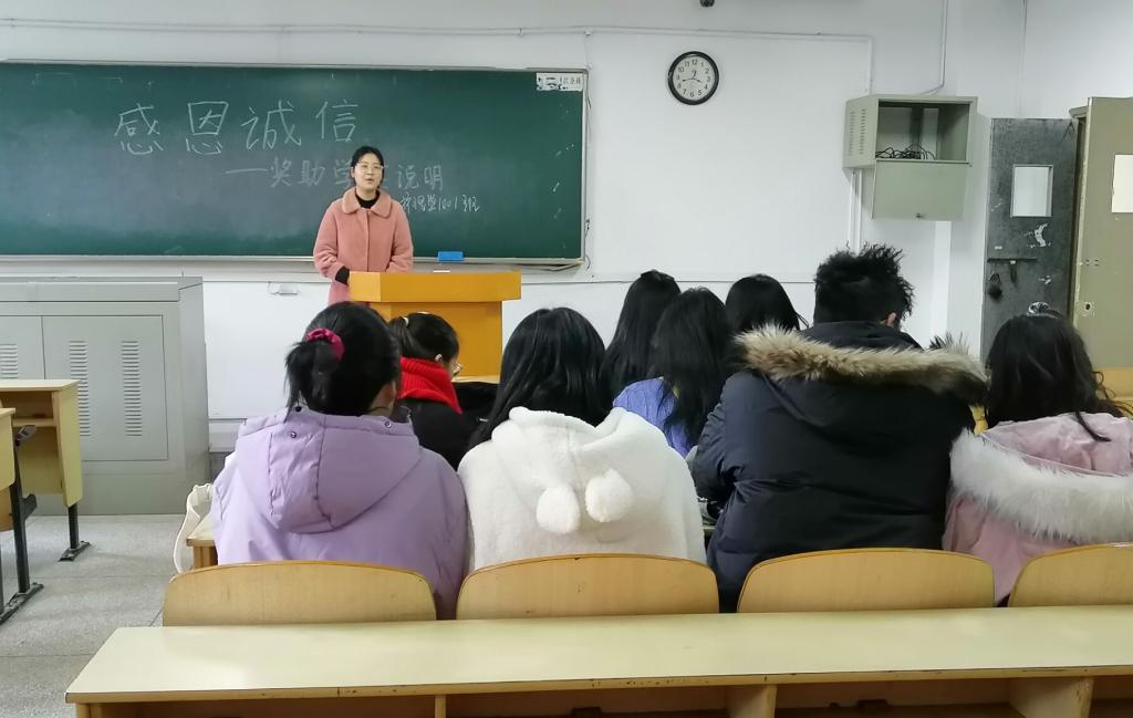 护理学1801班12月10日在科教201开展了感恩班会,重点讲解了关于奖助学金的评定情况。首先介绍了今年评比的情况,让获得奖助学金的同学上台分享自己的感受,表达对于学校国家给予这份帮助的感谢。班长对此次活动进行总结,着重强调讲述奖助学金的意义,鼓励班级同学一起奋斗加油,为自己的未来拼搏。本次班会让我们懂得了感恩,学会了建立正确的理财观念。古人云:一粥一饭,当思来之不易。无论是国家发放的助学金,还是父母给予我们的生活费,我们都应该格外地珍视它,勤俭节约地去使用它,在以后的老员工活中要勤奋学习、不断地提高自身的文化素质和道德修养,用优异的成绩回报社会,用过硬的本领去建设社会。