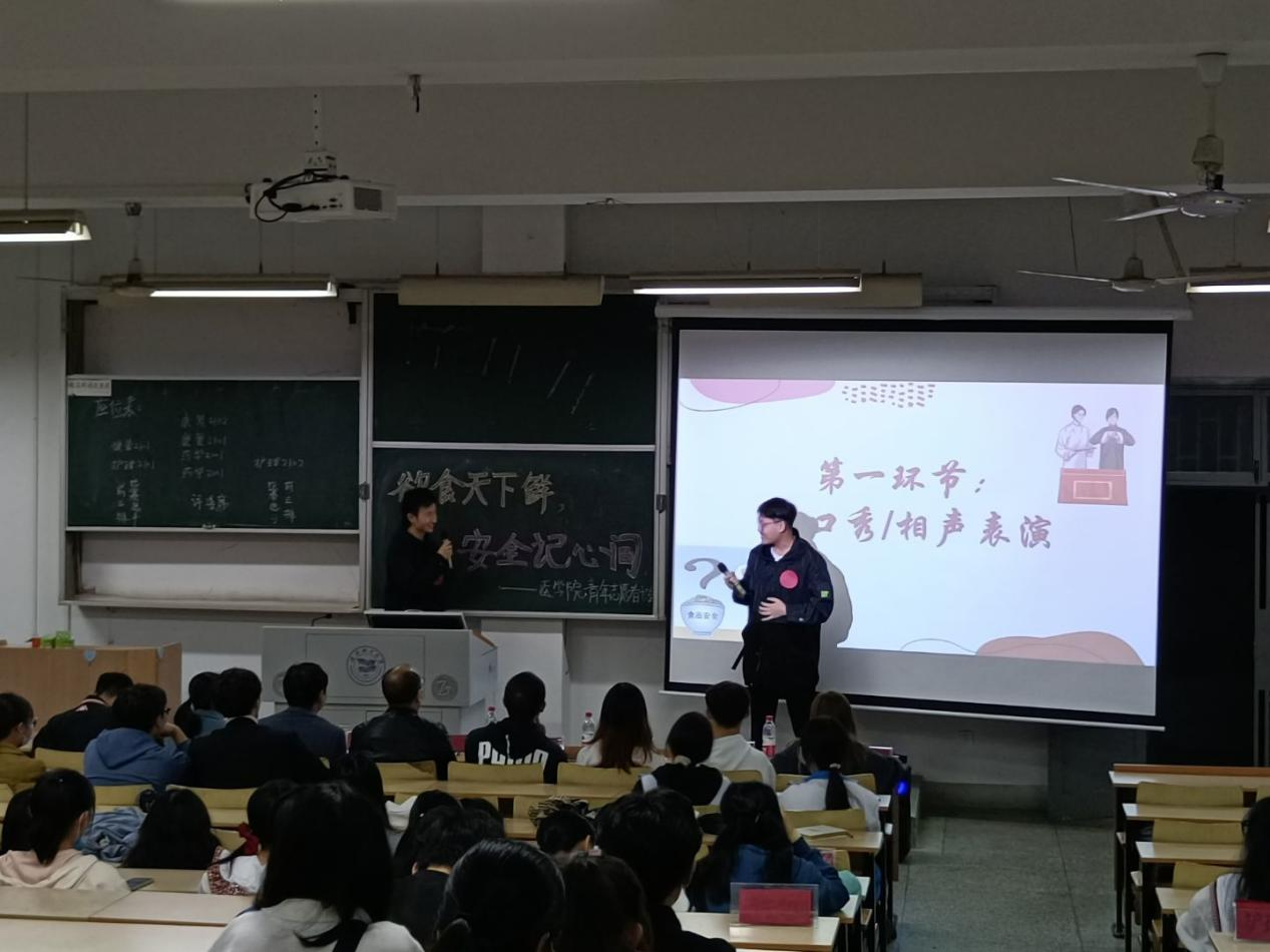 本次比赛分为脱口秀相声大赛与知识竞答环节,来自威廉希尔体育不同专业的6个组共11位选手紧扣主题各展才能,共同为观众们献上了一场激情饱满的相声脱口秀盛宴。第二组同学用脱口秀的形式反讽“天下独尊”的食品,告诉我们要抵制假冒伪劣产品,提高消费者自我防范意识。第三组同学采用相声表演的方式,用幽默批判的话语和生动活泼的演绎,反映如今食品安全问题,引人深思。第五组同学以脱口秀的形式为载体,以生活事例为切入点,对社会中食品安全的新闻和社会问题进行讨论,让人们在欢笑之余了解了更多的食品知识。