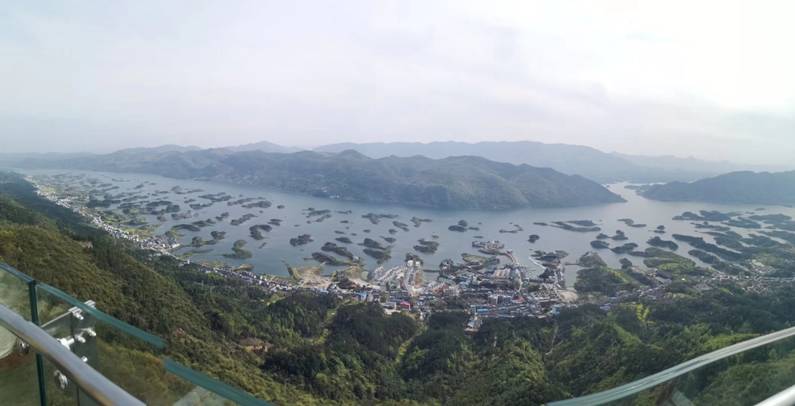 踏上海拔520.1314米的“天空之城”,置身于碧水蓝天之间,令人心旷神怡。立于台上,似无所依,举步惊心,再往下看,视野开阔,美景一览无余。星罗棋布的1002个小岛,恍偌置身仙境般。双重感官刺激,只觉心跳加速,战战兢兢,又对踏云而行的快感乐在其中。
