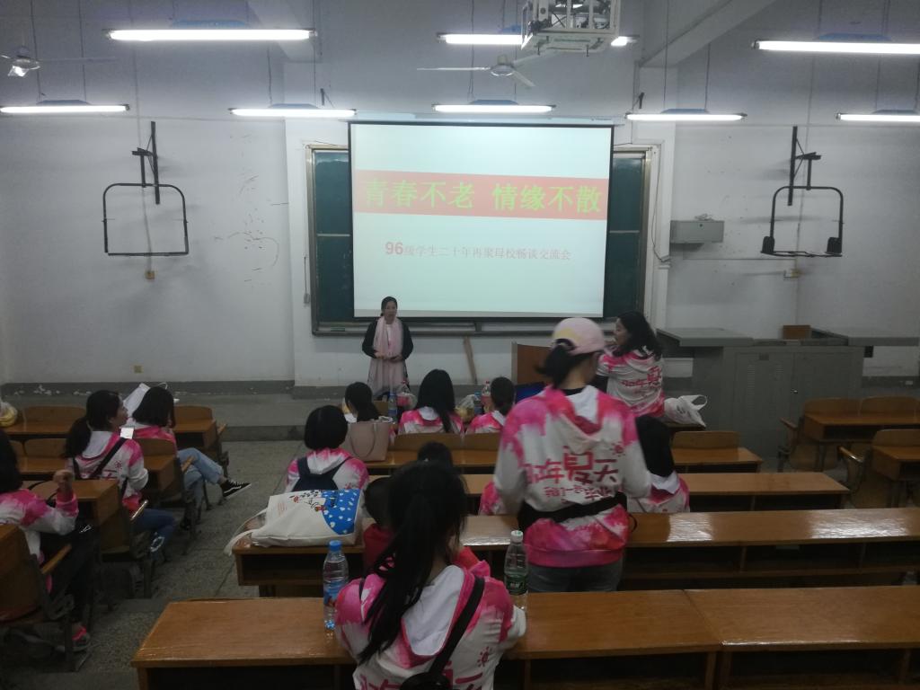 4月13日,学院1996级30余名员工再聚母校,公司党委书记周富平、副经理方成、党委副书记胡方年,老教师冯玲、班主任陈汉想以及任课教师李琦、明新贵等与员工们共聚一堂。
