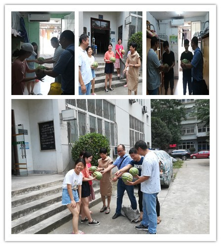 上午10时,学院领导对常青公寓C栋、D栋,东校区11栋留校的本科生、研究生进行了慰问,领导们走进员工宿舍,询问暑期实习员工的工作及生活情况,关心同学们的吃住行。张红菱书记特别对员工留校学习、上班工作途中的安全进行了关注,要求同学们注意防火、防电、防溺水、防医疗事故、防交通安全、防中暑等安全事项。随后将学校送来的300斤西瓜等慰问品分发给了每个员工宿舍。